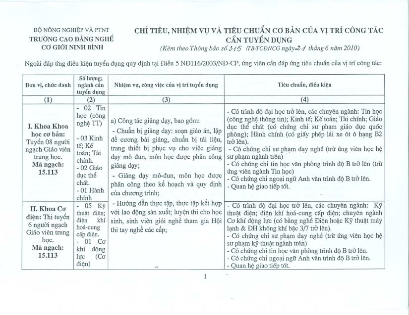 Thông báo về việc tuyển dụng